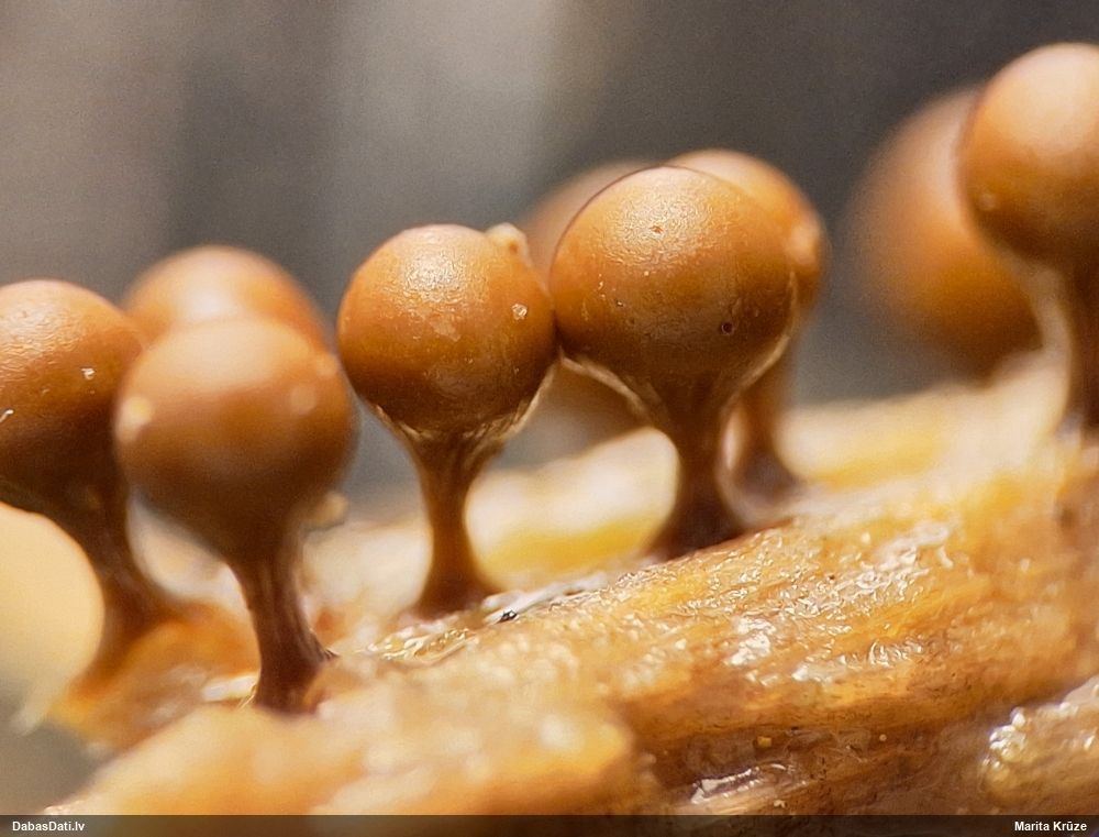 Milzumpaldies, Iveta! Kad būs skaidrs, ka dabasdati pēc mēneša dodas no šīs vietas prom uz jaunām mājām, plānoju atjaunot atslēgu, "izspiežot" no Dabasdatiem visu jaunāko info, un tādi pieredzes stāsti labāk palīdz saprast, kas jālabo. Ideāla gan nebūs, jo tam man nav laika (un finansu), bet kaut ko vismaz. :) Bet hipotēze sakrīt ar to, ko es redzēju, saņemot paraugu. :)) Un pēc atslēgas man arī tā ar visu oranžo krāsu sanāca kā viena no 2 pamathipotēzēm, bet man papildus bija zināms substrāts (iespējams, melnalksnis), vienīgi formu ievadīju kā apaļīgu, jo paskatījos, ka atslēgā izstieptā ir tāda ļoti izstiepta. Bet pilienveida arī būtu bijis jāizskata. Tā ka paldies abām, Ivetai un Renātei! Kaut kad vēlāk, kad būs vairāk laika, arī mikroskopēšu, bet izskatās visai pārliecinoši ar atsevišķiem (no sporu mākoņa), platiem kausiņiem.