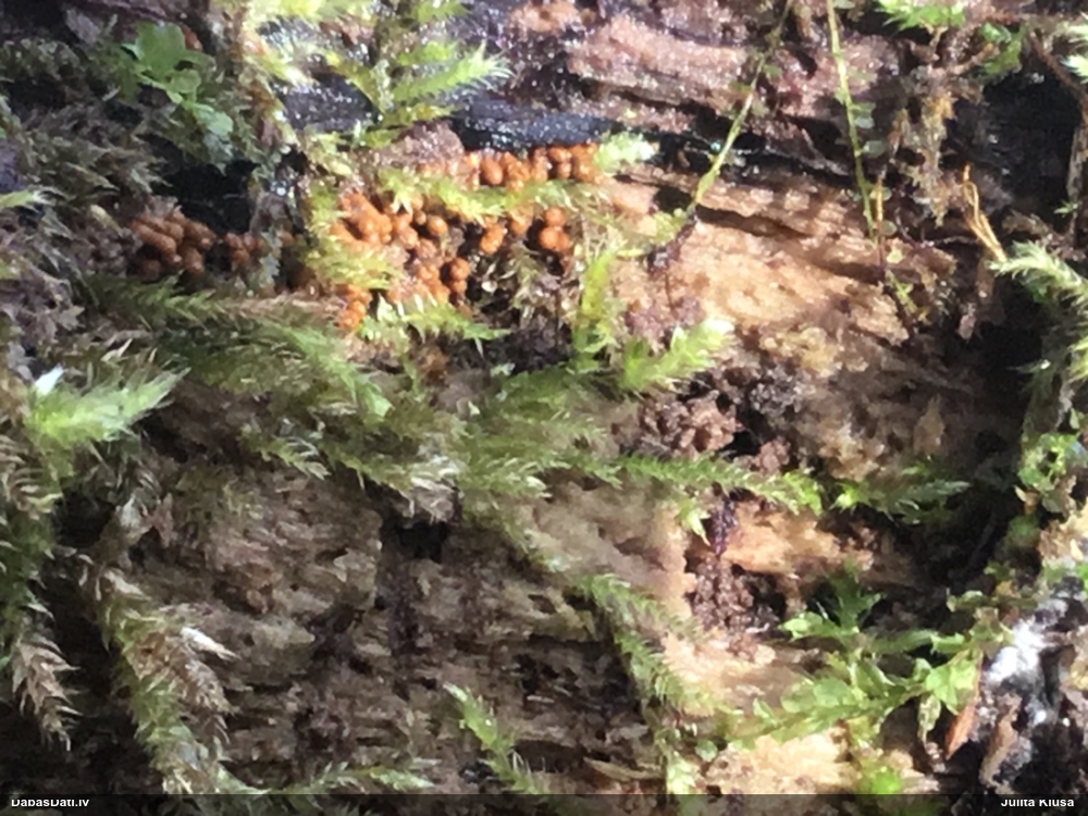 Milzumpaldies, Iveta! Kad būs skaidrs, ka dabasdati pēc mēneša dodas no šīs vietas prom uz jaunām mājām, plānoju atjaunot atslēgu, "izspiežot" no Dabasdatiem visu jaunāko info, un tādi pieredzes stāsti labāk palīdz saprast, kas jālabo. Ideāla gan nebūs, jo tam man nav laika (un finansu), bet kaut ko vismaz. :) Bet hipotēze sakrīt ar to, ko es redzēju, saņemot paraugu. :)) Un pēc atslēgas man arī tā ar visu oranžo krāsu sanāca kā viena no 2 pamathipotēzēm, bet man papildus bija zināms substrāts (iespējams, melnalksnis), vienīgi formu ievadīju kā apaļīgu, jo paskatījos, ka atslēgā izstieptā ir tāda ļoti izstiepta. Bet pilienveida arī būtu bijis jāizskata. Tā ka paldies abām, Ivetai un Renātei! Kaut kad vēlāk, kad būs vairāk laika, arī mikroskopēšu, bet izskatās visai pārliecinoši ar atsevišķiem (no sporu mākoņa), platiem kausiņiem.