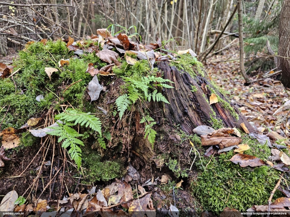 Iepriekš bija egļu audze ar sūnām un retām sēnēm. Tad izcirtumā saauga dadžveidīgo plantācija, tagad 3 gadā ciesu audzes.