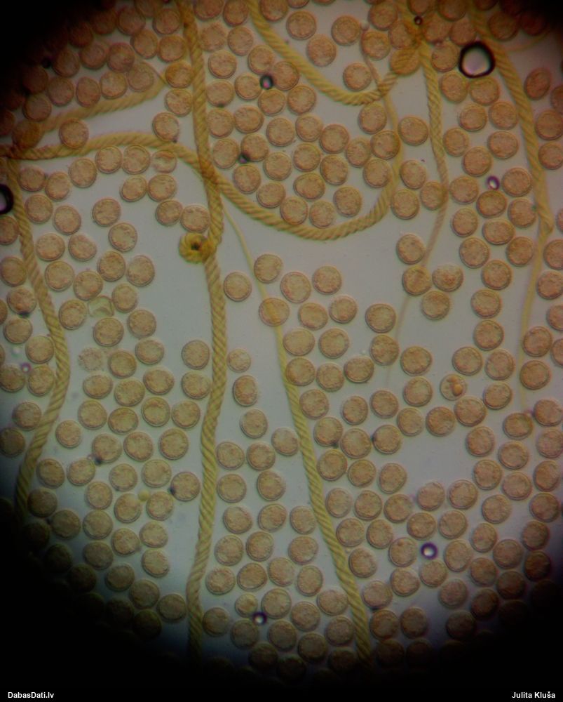 Milzumpaldies, Iveta! Kad būs skaidrs, ka dabasdati pēc mēneša dodas no šīs vietas prom uz jaunām mājām, plānoju atjaunot atslēgu, "izspiežot" no Dabasdatiem visu jaunāko info, un tādi pieredzes stāsti labāk palīdz saprast, kas jālabo. Ideāla gan nebūs, jo tam man nav laika (un finansu), bet kaut ko vismaz. :) Bet hipotēze sakrīt ar to, ko es redzēju, saņemot paraugu. :)) Un pēc atslēgas man arī tā ar visu oranžo krāsu sanāca kā viena no 2 pamathipotēzēm, bet man papildus bija zināms substrāts (iespējams, melnalksnis), vienīgi formu ievadīju kā apaļīgu, jo paskatījos, ka atslēgā izstieptā ir tāda ļoti izstiepta. Bet pilienveida arī būtu bijis jāizskata. Tā ka paldies abām, Ivetai un Renātei! Kaut kad vēlāk, kad būs vairāk laika, arī mikroskopēšu, bet izskatās visai pārliecinoši ar atsevišķiem (no sporu mākoņa), platiem kausiņiem.