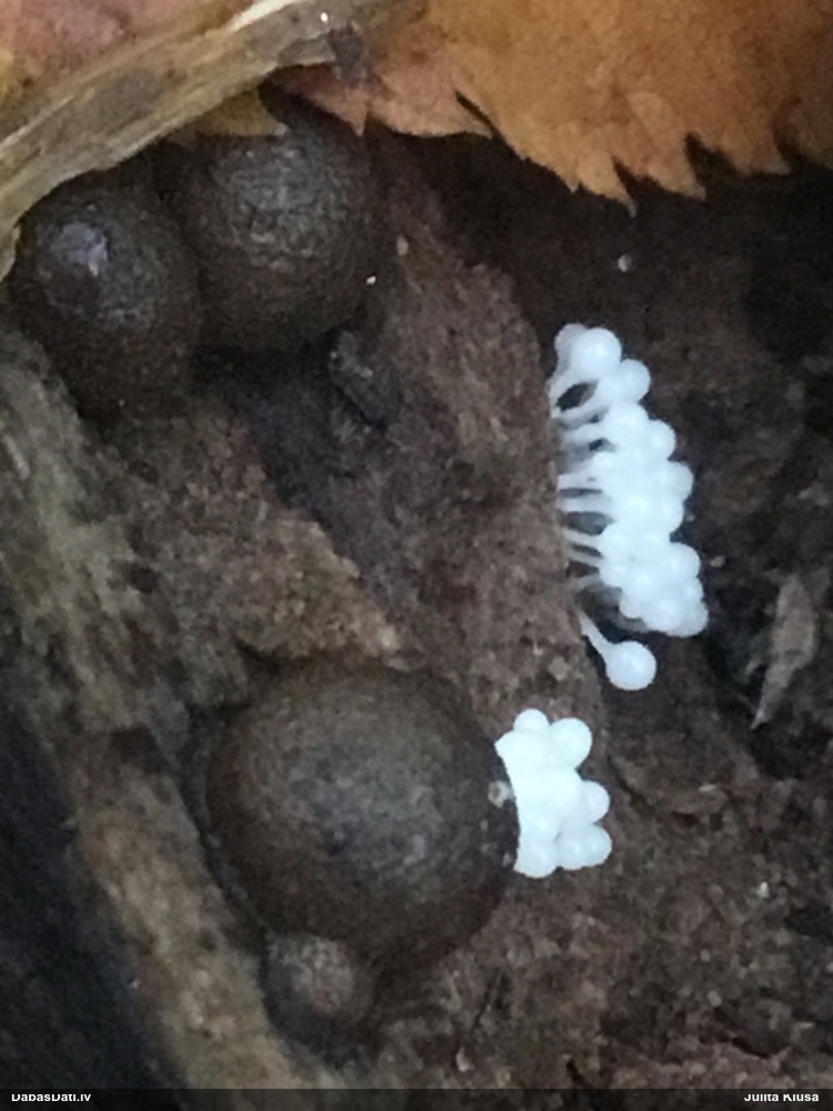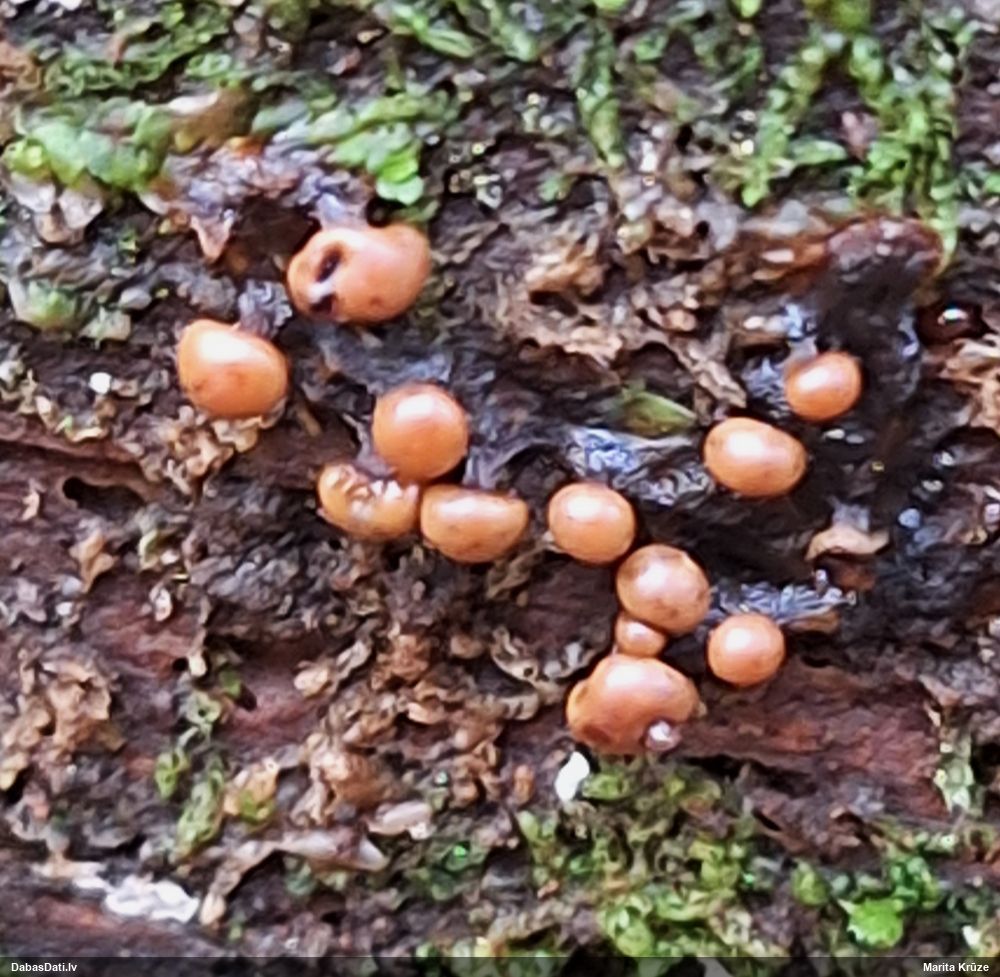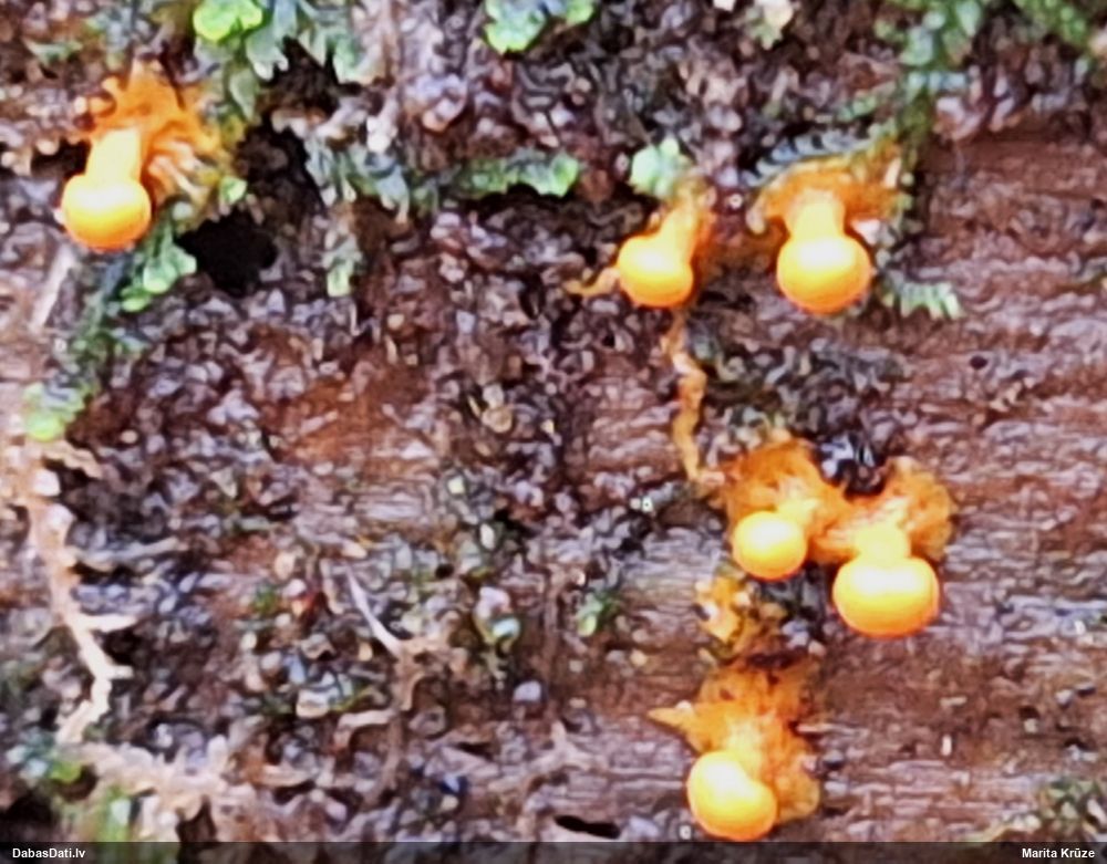 Milzumpaldies, Iveta! Kad būs skaidrs, ka dabasdati pēc mēneša dodas no šīs vietas prom uz jaunām mājām, plānoju atjaunot atslēgu, "izspiežot" no Dabasdatiem visu jaunāko info, un tādi pieredzes stāsti labāk palīdz saprast, kas jālabo. Ideāla gan nebūs, jo tam man nav laika (un finansu), bet kaut ko vismaz. :) Bet hipotēze sakrīt ar to, ko es redzēju, saņemot paraugu. :)) Un pēc atslēgas man arī tā ar visu oranžo krāsu sanāca kā viena no 2 pamathipotēzēm, bet man papildus bija zināms substrāts (iespējams, melnalksnis), vienīgi formu ievadīju kā apaļīgu, jo paskatījos, ka atslēgā izstieptā ir tāda ļoti izstiepta. Bet pilienveida arī būtu bijis jāizskata. Tā ka paldies abām, Ivetai un Renātei! Kaut kad vēlāk, kad būs vairāk laika, arī mikroskopēšu, bet izskatās visai pārliecinoši ar atsevišķiem (no sporu mākoņa), platiem kausiņiem.
