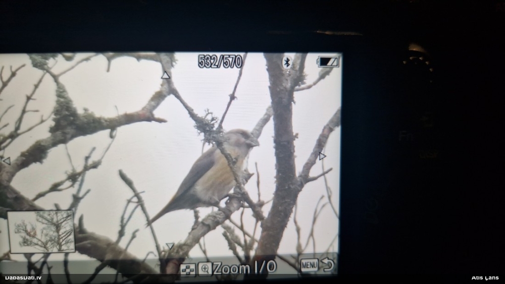 Diemžēl bildes kvalitāte, piezūmojot no tel., ir švaka un negribēju arī izbaidīt putnu barošanās procesā, bet mugura zaļa, krūšu daļā - pelēks/gaišs. Pēc i-netā atrastā apraksta varētu būt mātīte, jo nebija "sarkanie vaigi"