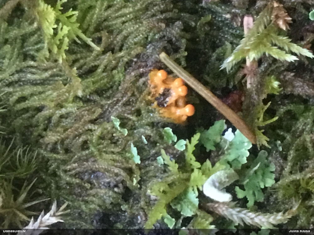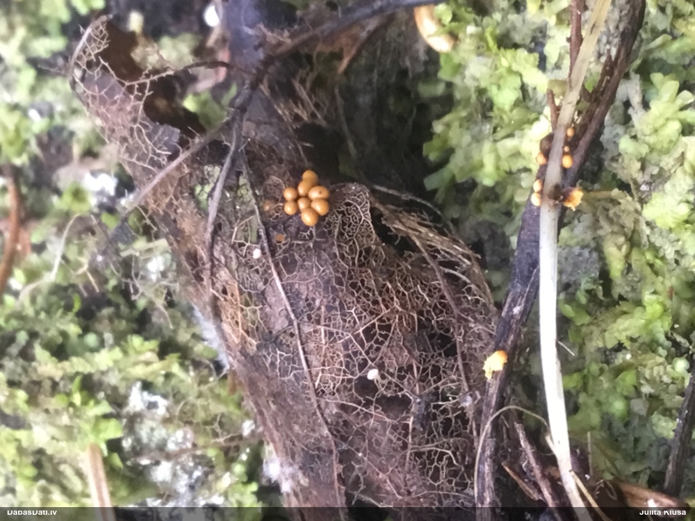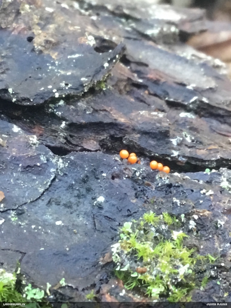 Milzumpaldies, Iveta! Kad būs skaidrs, ka dabasdati pēc mēneša dodas no šīs vietas prom uz jaunām mājām, plānoju atjaunot atslēgu, "izspiežot" no Dabasdatiem visu jaunāko info, un tādi pieredzes stāsti labāk palīdz saprast, kas jālabo. Ideāla gan nebūs, jo tam man nav laika (un finansu), bet kaut ko vismaz. :) Bet hipotēze sakrīt ar to, ko es redzēju, saņemot paraugu. :)) Un pēc atslēgas man arī tā ar visu oranžo krāsu sanāca kā viena no 2 pamathipotēzēm, bet man papildus bija zināms substrāts (iespējams, melnalksnis), vienīgi formu ievadīju kā apaļīgu, jo paskatījos, ka atslēgā izstieptā ir tāda ļoti izstiepta. Bet pilienveida arī būtu bijis jāizskata. Tā ka paldies abām, Ivetai un Renātei! Kaut kad vēlāk, kad būs vairāk laika, arī mikroskopēšu, bet izskatās visai pārliecinoši ar atsevišķiem (no sporu mākoņa), platiem kausiņiem.