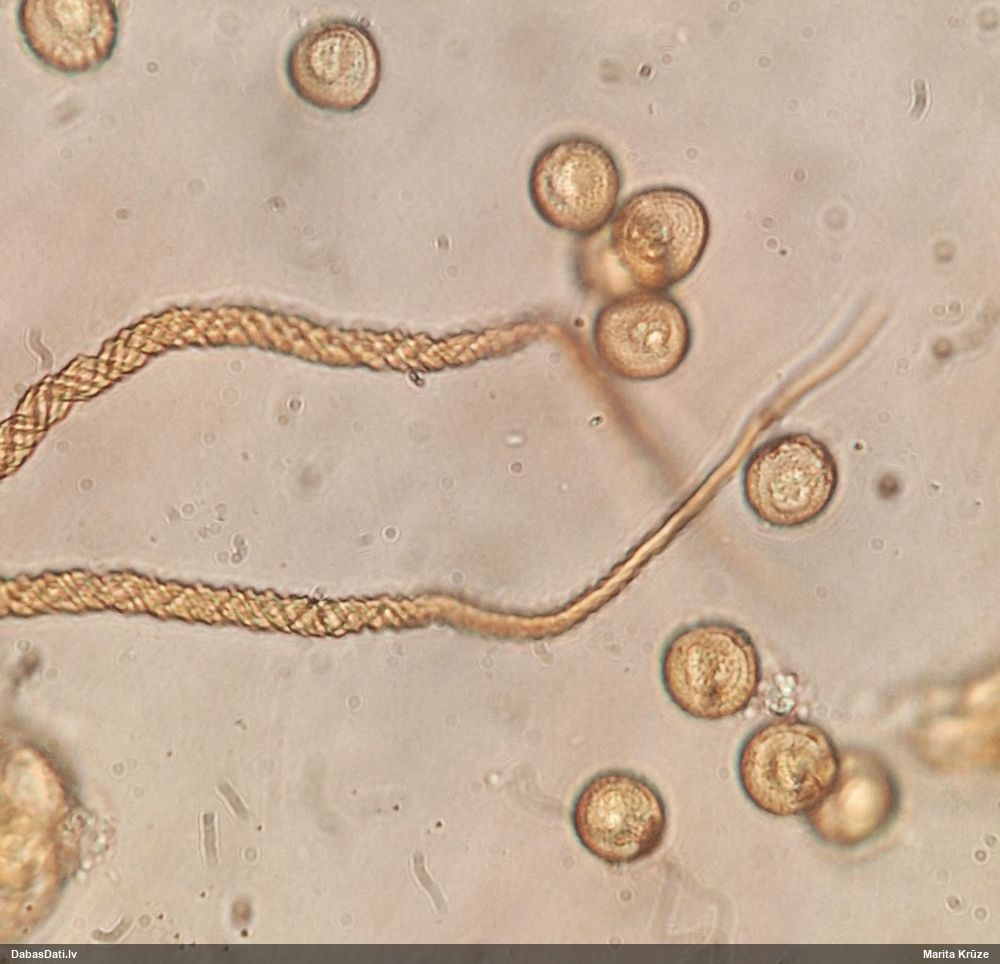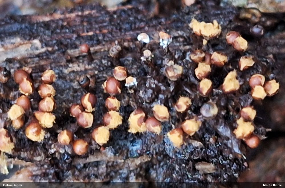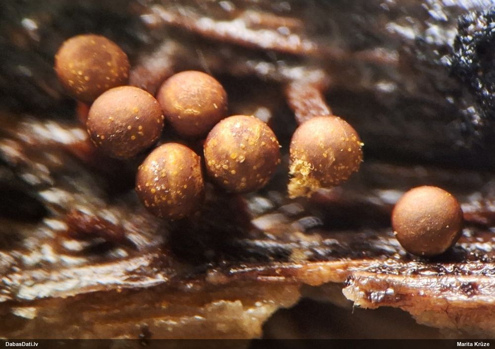 Milzumpaldies, Iveta! Kad būs skaidrs, ka dabasdati pēc mēneša dodas no šīs vietas prom uz jaunām mājām, plānoju atjaunot atslēgu, "izspiežot" no Dabasdatiem visu jaunāko info, un tādi pieredzes stāsti labāk palīdz saprast, kas jālabo. Ideāla gan nebūs, jo tam man nav laika (un finansu), bet kaut ko vismaz. :) Bet hipotēze sakrīt ar to, ko es redzēju, saņemot paraugu. :)) Un pēc atslēgas man arī tā ar visu oranžo krāsu sanāca kā viena no 2 pamathipotēzēm, bet man papildus bija zināms substrāts (iespējams, melnalksnis), vienīgi formu ievadīju kā apaļīgu, jo paskatījos, ka atslēgā izstieptā ir tāda ļoti izstiepta. Bet pilienveida arī būtu bijis jāizskata. Tā ka paldies abām, Ivetai un Renātei! Kaut kad vēlāk, kad būs vairāk laika, arī mikroskopēšu, bet izskatās visai pārliecinoši ar atsevišķiem (no sporu mākoņa), platiem kausiņiem.