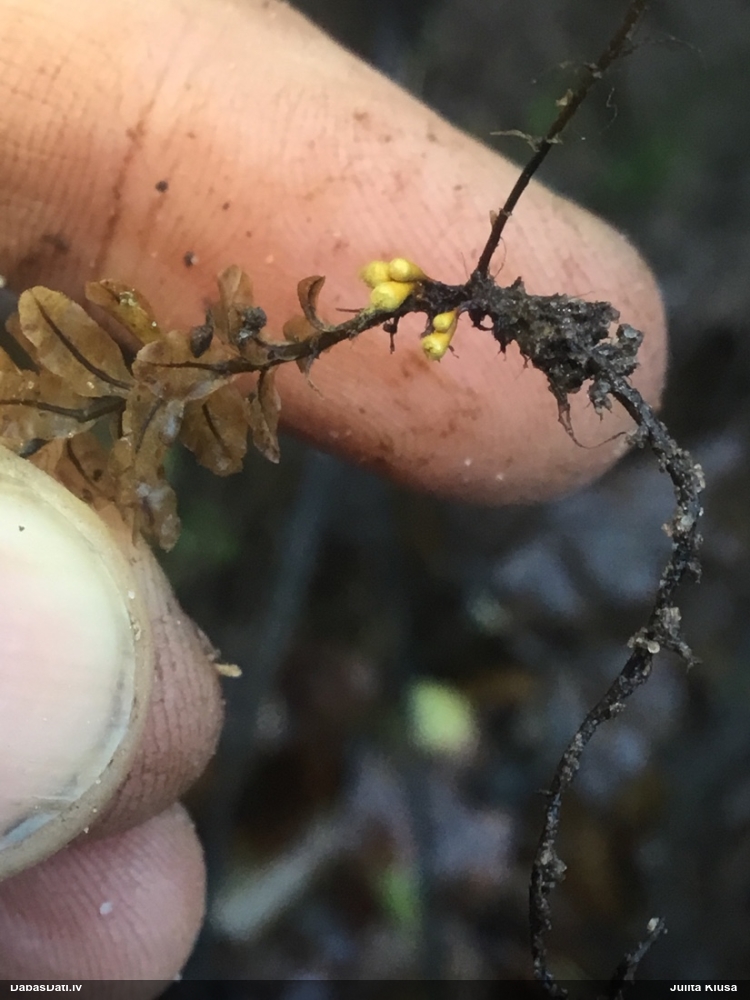 Milzumpaldies, Iveta! Kad būs skaidrs, ka dabasdati pēc mēneša dodas no šīs vietas prom uz jaunām mājām, plānoju atjaunot atslēgu, "izspiežot" no Dabasdatiem visu jaunāko info, un tādi pieredzes stāsti labāk palīdz saprast, kas jālabo. Ideāla gan nebūs, jo tam man nav laika (un finansu), bet kaut ko vismaz. :) Bet hipotēze sakrīt ar to, ko es redzēju, saņemot paraugu. :)) Un pēc atslēgas man arī tā ar visu oranžo krāsu sanāca kā viena no 2 pamathipotēzēm, bet man papildus bija zināms substrāts (iespējams, melnalksnis), vienīgi formu ievadīju kā apaļīgu, jo paskatījos, ka atslēgā izstieptā ir tāda ļoti izstiepta. Bet pilienveida arī būtu bijis jāizskata. Tā ka paldies abām, Ivetai un Renātei! Kaut kad vēlāk, kad būs vairāk laika, arī mikroskopēšu, bet izskatās visai pārliecinoši ar atsevišķiem (no sporu mākoņa), platiem kausiņiem.