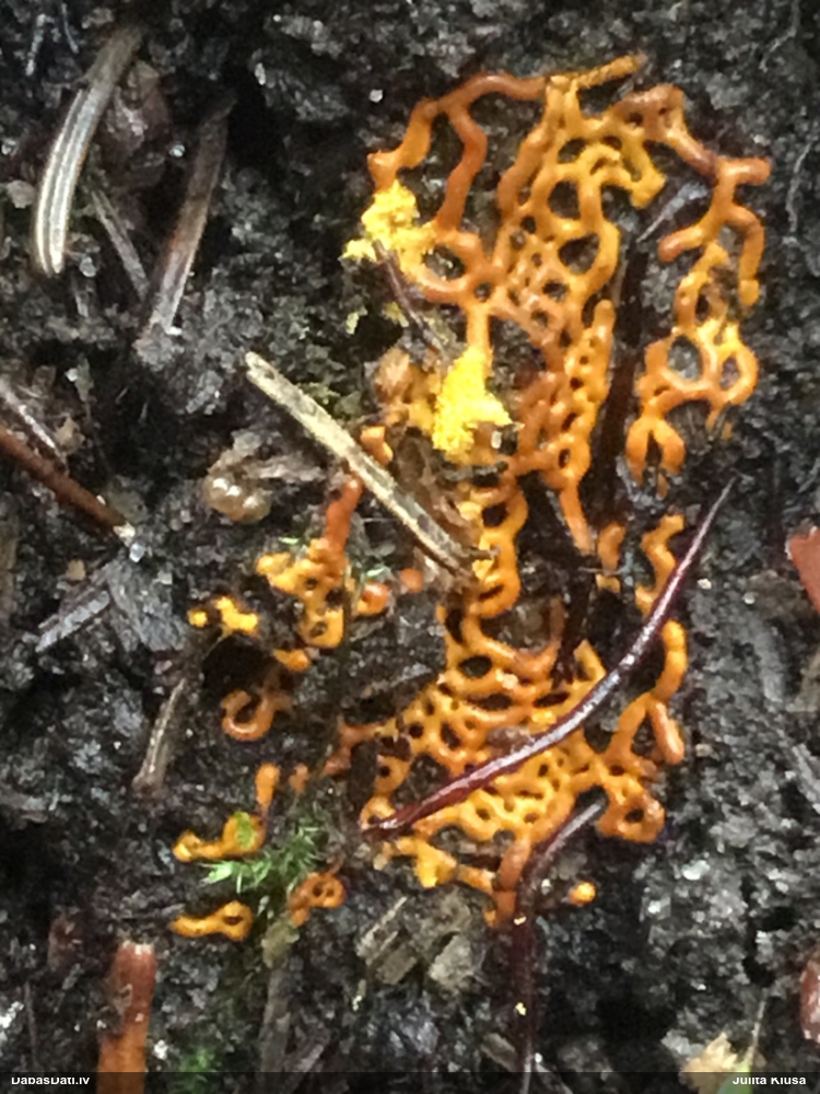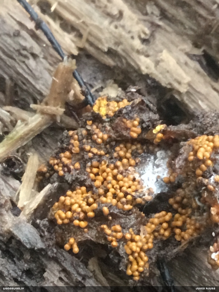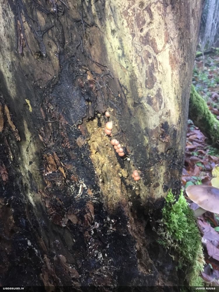 Milzumpaldies, Iveta! Kad būs skaidrs, ka dabasdati pēc mēneša dodas no šīs vietas prom uz jaunām mājām, plānoju atjaunot atslēgu, "izspiežot" no Dabasdatiem visu jaunāko info, un tādi pieredzes stāsti labāk palīdz saprast, kas jālabo. Ideāla gan nebūs, jo tam man nav laika (un finansu), bet kaut ko vismaz. :) Bet hipotēze sakrīt ar to, ko es redzēju, saņemot paraugu. :)) Un pēc atslēgas man arī tā ar visu oranžo krāsu sanāca kā viena no 2 pamathipotēzēm, bet man papildus bija zināms substrāts (iespējams, melnalksnis), vienīgi formu ievadīju kā apaļīgu, jo paskatījos, ka atslēgā izstieptā ir tāda ļoti izstiepta. Bet pilienveida arī būtu bijis jāizskata. Tā ka paldies abām, Ivetai un Renātei! Kaut kad vēlāk, kad būs vairāk laika, arī mikroskopēšu, bet izskatās visai pārliecinoši ar atsevišķiem (no sporu mākoņa), platiem kausiņiem.