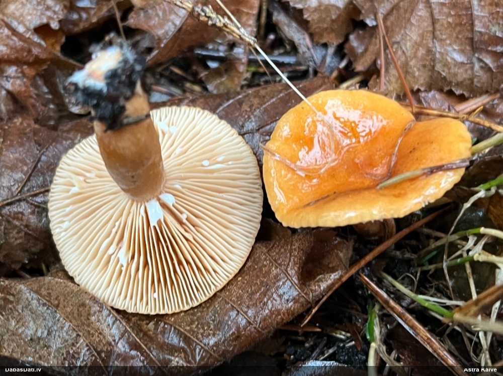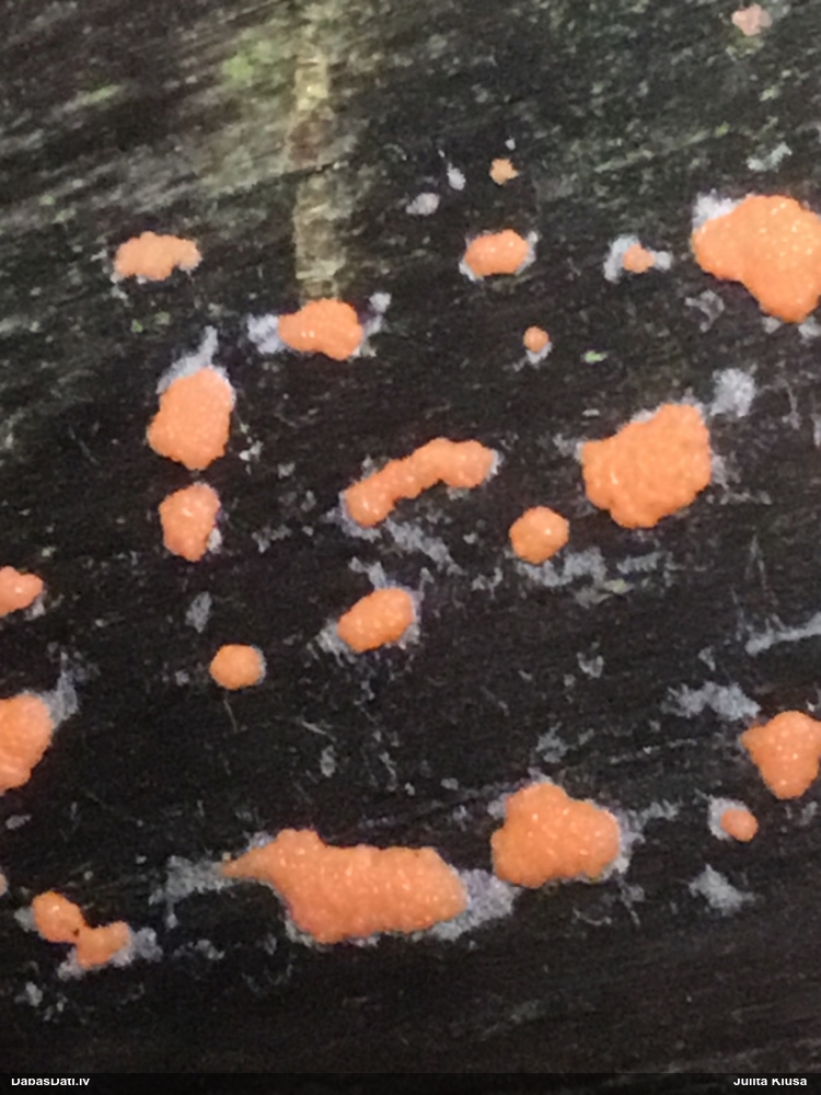 Milzumpaldies, Iveta! Kad būs skaidrs, ka dabasdati pēc mēneša dodas no šīs vietas prom uz jaunām mājām, plānoju atjaunot atslēgu, "izspiežot" no Dabasdatiem visu jaunāko info, un tādi pieredzes stāsti labāk palīdz saprast, kas jālabo. Ideāla gan nebūs, jo tam man nav laika (un finansu), bet kaut ko vismaz. :) Bet hipotēze sakrīt ar to, ko es redzēju, saņemot paraugu. :)) Un pēc atslēgas man arī tā ar visu oranžo krāsu sanāca kā viena no 2 pamathipotēzēm, bet man papildus bija zināms substrāts (iespējams, melnalksnis), vienīgi formu ievadīju kā apaļīgu, jo paskatījos, ka atslēgā izstieptā ir tāda ļoti izstiepta. Bet pilienveida arī būtu bijis jāizskata. Tā ka paldies abām, Ivetai un Renātei! Kaut kad vēlāk, kad būs vairāk laika, arī mikroskopēšu, bet izskatās visai pārliecinoši ar atsevišķiem (no sporu mākoņa), platiem kausiņiem.