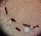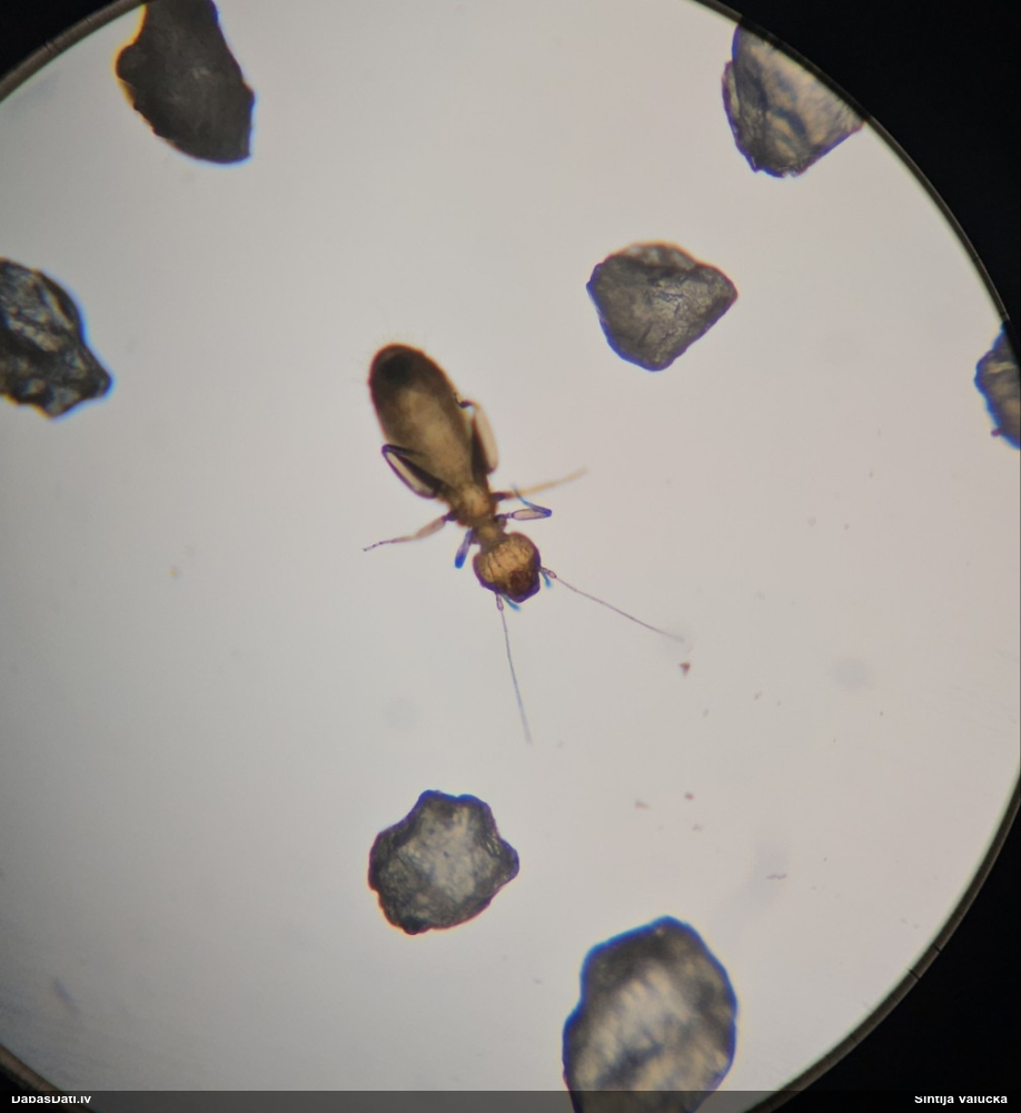 Katrā bildē pa vienai var saskatīt, bildēts ar telefonu caur lupu, nomocījos, labāks nekas nesanāk. Augsnē to ir ļoti daudz, ļoti veiklas, tikai dažas var uzķert ar visu ķermeni, pārējām tik ragi vai astes parādās. Sīkas, baltas, vienkrāsainas. Vai tās būtu kolembolas?