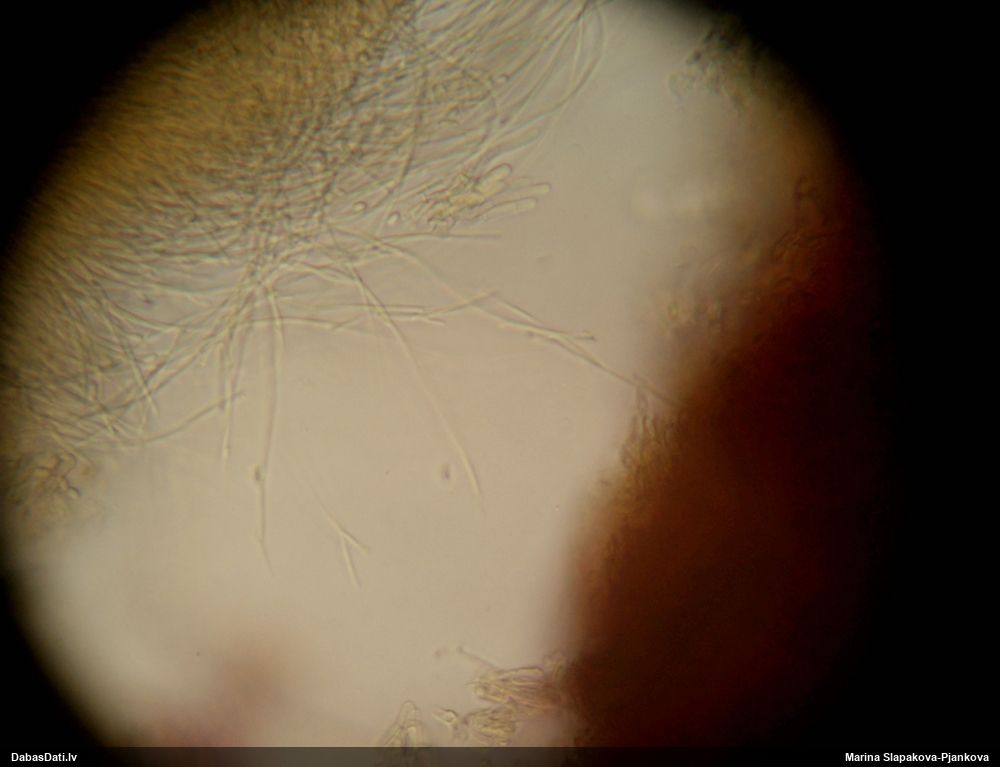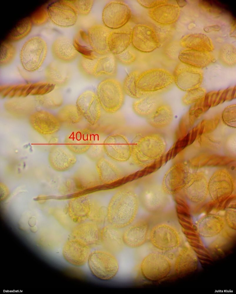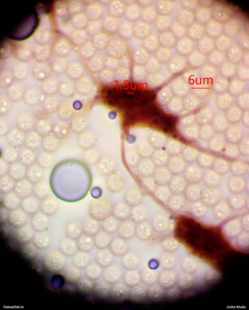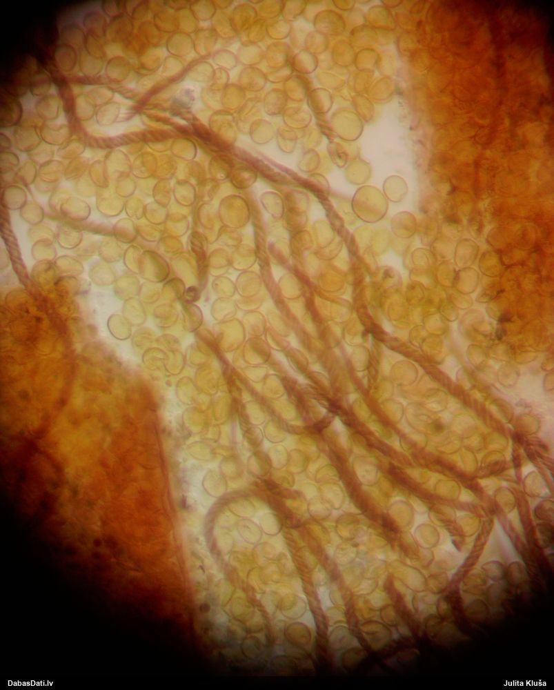 Milzumpaldies, Iveta! Kad būs skaidrs, ka dabasdati pēc mēneša dodas no šīs vietas prom uz jaunām mājām, plānoju atjaunot atslēgu, "izspiežot" no Dabasdatiem visu jaunāko info, un tādi pieredzes stāsti labāk palīdz saprast, kas jālabo. Ideāla gan nebūs, jo tam man nav laika (un finansu), bet kaut ko vismaz. :) Bet hipotēze sakrīt ar to, ko es redzēju, saņemot paraugu. :)) Un pēc atslēgas man arī tā ar visu oranžo krāsu sanāca kā viena no 2 pamathipotēzēm, bet man papildus bija zināms substrāts (iespējams, melnalksnis), vienīgi formu ievadīju kā apaļīgu, jo paskatījos, ka atslēgā izstieptā ir tāda ļoti izstiepta. Bet pilienveida arī būtu bijis jāizskata. Tā ka paldies abām, Ivetai un Renātei! Kaut kad vēlāk, kad būs vairāk laika, arī mikroskopēšu, bet izskatās visai pārliecinoši ar atsevišķiem (no sporu mākoņa), platiem kausiņiem.