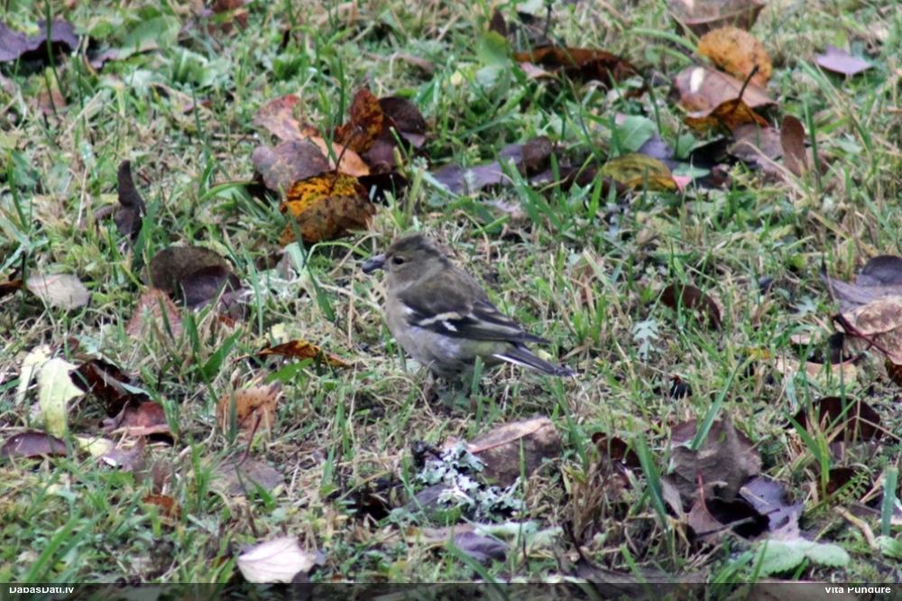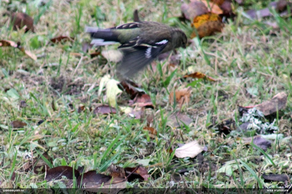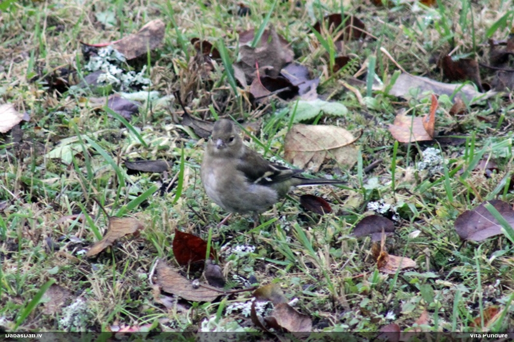Diemžēl bildes kvalitāte, piezūmojot no tel., ir švaka un negribēju arī izbaidīt putnu barošanās procesā, bet mugura zaļa, krūšu daļā - pelēks/gaišs. Pēc i-netā atrastā apraksta varētu būt mātīte, jo nebija "sarkanie vaigi"