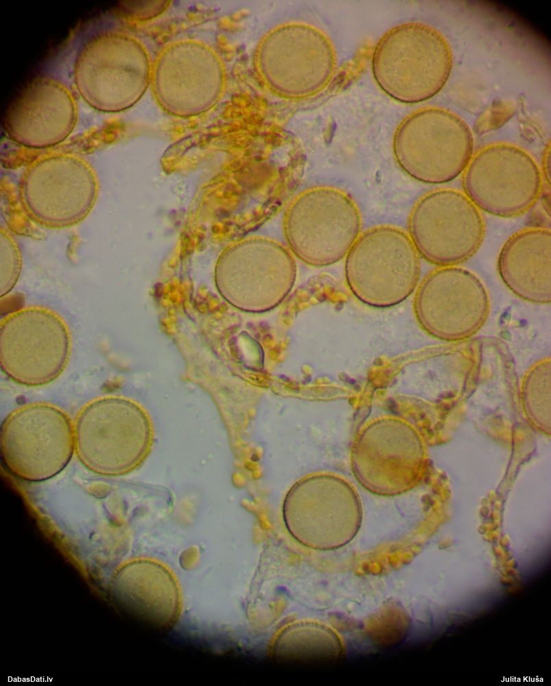 Milzumpaldies, Iveta! Kad būs skaidrs, ka dabasdati pēc mēneša dodas no šīs vietas prom uz jaunām mājām, plānoju atjaunot atslēgu, "izspiežot" no Dabasdatiem visu jaunāko info, un tādi pieredzes stāsti labāk palīdz saprast, kas jālabo. Ideāla gan nebūs, jo tam man nav laika (un finansu), bet kaut ko vismaz. :) Bet hipotēze sakrīt ar to, ko es redzēju, saņemot paraugu. :)) Un pēc atslēgas man arī tā ar visu oranžo krāsu sanāca kā viena no 2 pamathipotēzēm, bet man papildus bija zināms substrāts (iespējams, melnalksnis), vienīgi formu ievadīju kā apaļīgu, jo paskatījos, ka atslēgā izstieptā ir tāda ļoti izstiepta. Bet pilienveida arī būtu bijis jāizskata. Tā ka paldies abām, Ivetai un Renātei! Kaut kad vēlāk, kad būs vairāk laika, arī mikroskopēšu, bet izskatās visai pārliecinoši ar atsevišķiem (no sporu mākoņa), platiem kausiņiem.