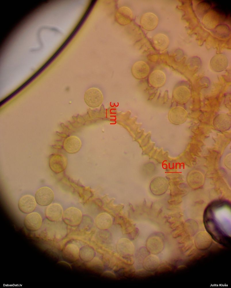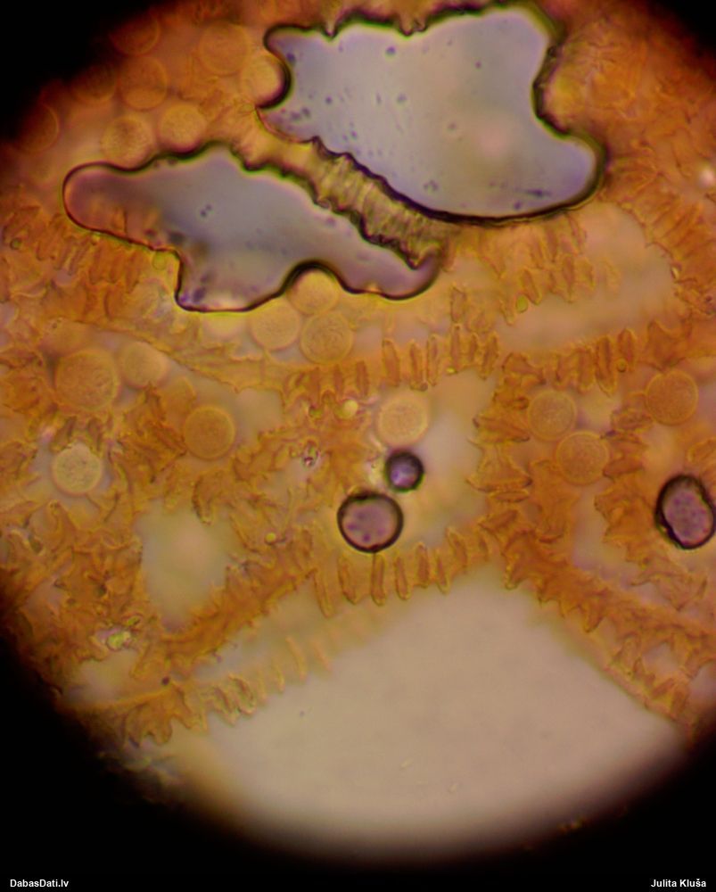 Milzumpaldies, Iveta! Kad būs skaidrs, ka dabasdati pēc mēneša dodas no šīs vietas prom uz jaunām mājām, plānoju atjaunot atslēgu, "izspiežot" no Dabasdatiem visu jaunāko info, un tādi pieredzes stāsti labāk palīdz saprast, kas jālabo. Ideāla gan nebūs, jo tam man nav laika (un finansu), bet kaut ko vismaz. :) Bet hipotēze sakrīt ar to, ko es redzēju, saņemot paraugu. :)) Un pēc atslēgas man arī tā ar visu oranžo krāsu sanāca kā viena no 2 pamathipotēzēm, bet man papildus bija zināms substrāts (iespējams, melnalksnis), vienīgi formu ievadīju kā apaļīgu, jo paskatījos, ka atslēgā izstieptā ir tāda ļoti izstiepta. Bet pilienveida arī būtu bijis jāizskata. Tā ka paldies abām, Ivetai un Renātei! Kaut kad vēlāk, kad būs vairāk laika, arī mikroskopēšu, bet izskatās visai pārliecinoši ar atsevišķiem (no sporu mākoņa), platiem kausiņiem.