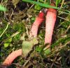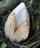 Rūtiņa ir 1mm, par kājiņu es arī nevaru saprast - drīzāk nav nekā ir :) Nobriedušas ir netīri pelēkbaltas ar ļoti trauslu perīdiju. Pagaidām daivās neplaisā, grūti pateikt, kā plaisā, ja nepieskaras augļķermeņiem. "Kraukšķīgs perīdijs", tas ir kā? Pie mazākā pieskāriena tas saplīst gabaliņos, bet vai kraukšķ? :) Sarkans nav, iekšpuse perīdijam balta, bet pskatīšos vēl.