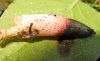 Pieliku vēl četrus foto: augļķermeņi no metāliskās krāsas paliek brūni; atradu kaut ko līdzīgu kolumellai, bet stiprāk uzpūšot tā "lodīte" izvēlās arā, atstājot iedobi; kātiņa galā palika neliels paplatinājums.