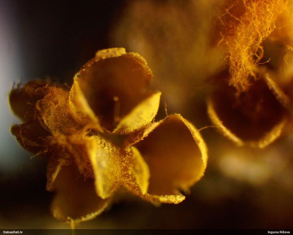 1. un 3. foto droši vien Hemitrichia decipiens, bet 2. foto sporu mākonis bez brīviem galiem un kausiņa malas izskatās atlocītas - varētu būt Hemitrichia calyculata. Mikroskopiski to 1000x palielinājumā var pārbaudīt- Hemitrichia calyculata sporas būs gaišas, tīkliņu grūti saskatīt. H.clavata sporas ir tumšāk dzeltenas, tīkliņu labāk var saskatīt un apkārt vēl skaidri redzams tīkla gredzens. Izmēri arī mazliet atšķiras - H.calyculata tipiski 6,5-7,5 mkm (reti līdz 8 mkm), kamēr H.clavata 7,5-9 (10) mkm