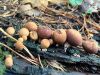 Pieliku vēl četrus foto: augļķermeņi no metāliskās krāsas paliek brūni; atradu kaut ko līdzīgu kolumellai, bet stiprāk uzpūšot tā "lodīte" izvēlās arā, atstājot iedobi; kātiņa galā palika neliels paplatinājums.