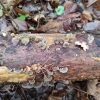Skujkoks nav par tuvumā. Ir tikai lapu koki - lazda, kastanis, ābelītes. Otrpus celmam (D pusē) lejasdaļā, ko pamanīju pirmo, arī bija kaut kas no šim līdzīga, bet tik izsporojies, ka palicis tikai paliels brūns sporu pleķis. Intriga pavērot nākamgad.