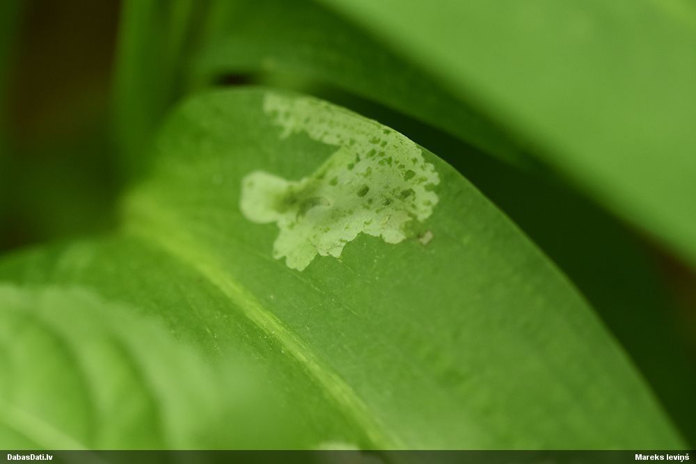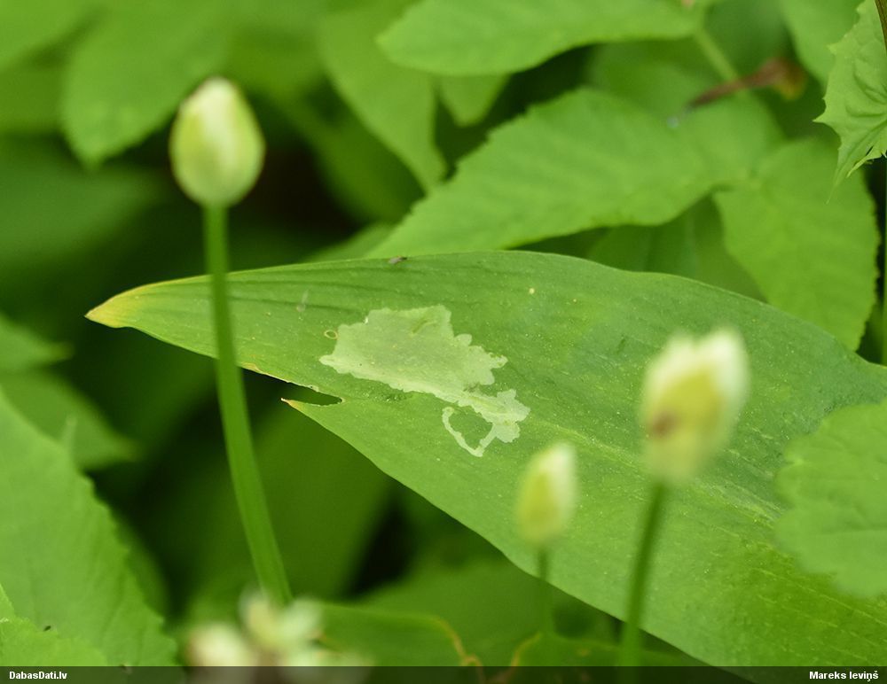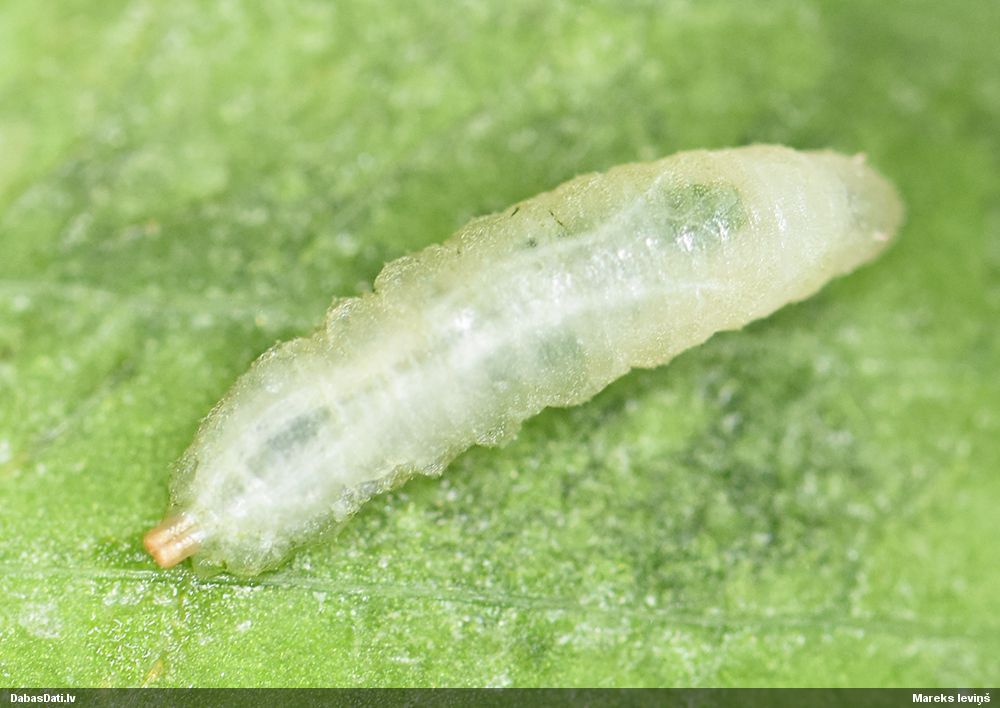 PiezīmesUz lakšiem. Kāpuru darbības pēdas. Kāpurs attēlā no augšējā foto redzamās lakša lapas. Apakšējā foto arī lapas iekšienē redzams cits kāpurs. Iespējams Cheilosia fasciata, cita man zināmā ziedmuša uz lakšiem - Portevinia maculata kāpuri adzīvo lakša sīpolu un stiebra apakšdaļu.