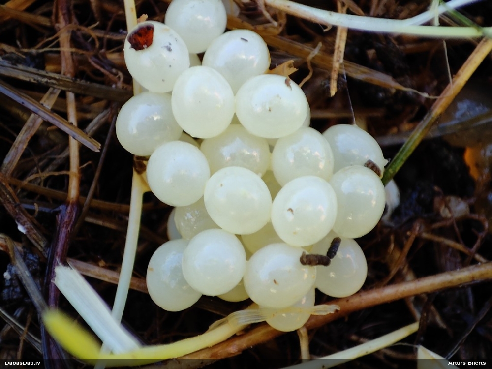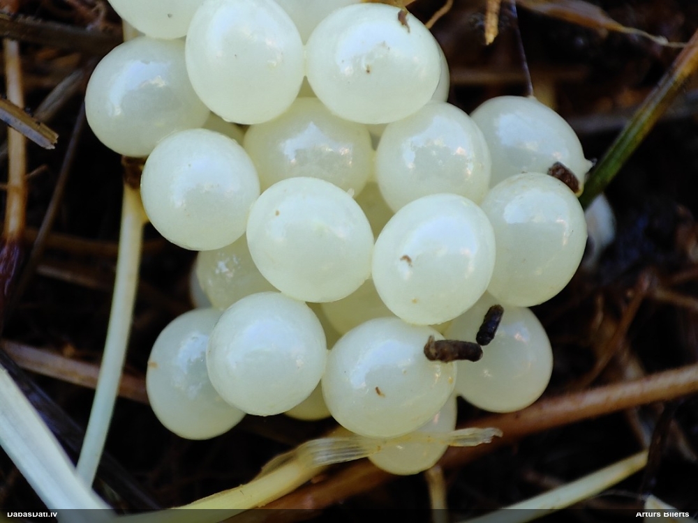 Paldies! Tā kā lieli eļļas pilieni nav izteikti, tad es sliecos uz L.irregulare, kurai ir ļoti dažādi augļķermeņi, arī gaiši, un pamatpazīmes atbilst. Bet tā skaitās ļoti neapaļa suga, t.i., augļķermeņi nav kā lodes. Te izskatās diezgan apaļi, tas mulsina. Nekad jau nevar zināt, vai šī nav vēl neaprakstīta suga. Bet nu pagaidām lai iet kā L.irregulare.