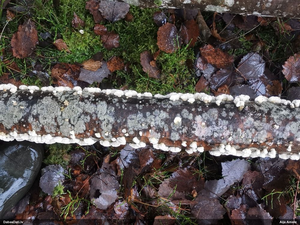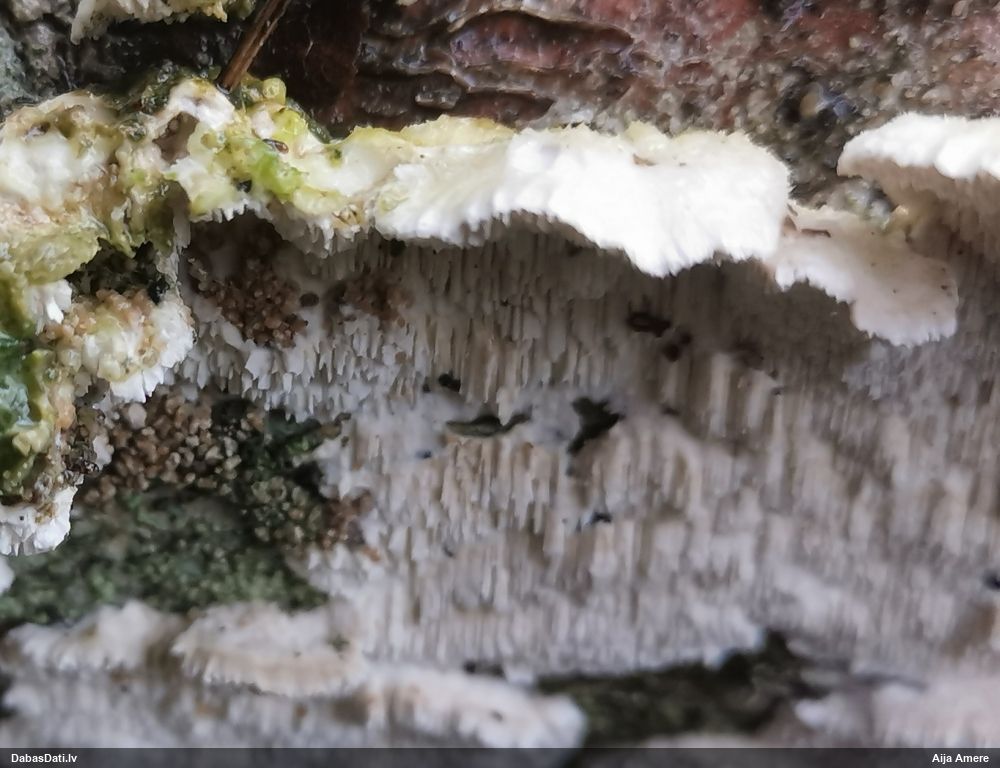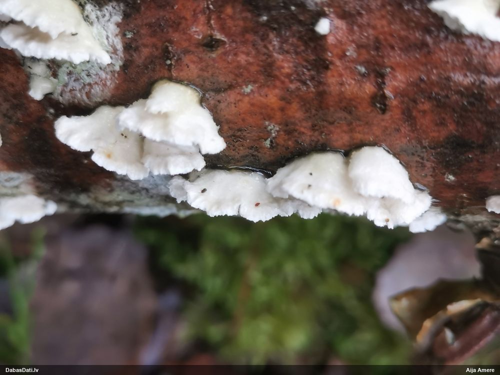 Želejas flēbija normāli uz lapkokiem. Šeit drīzāk Skeletocutis amorpha. Bet nu īsti nevar saprast