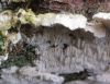 Rūtiņa ir 1mm, par kājiņu es arī nevaru saprast - drīzāk nav nekā ir :) Nobriedušas ir netīri pelēkbaltas ar ļoti trauslu perīdiju. Pagaidām daivās neplaisā, grūti pateikt, kā plaisā, ja nepieskaras augļķermeņiem. "Kraukšķīgs perīdijs", tas ir kā? Pie mazākā pieskāriena tas saplīst gabaliņos, bet vai kraukšķ? :) Sarkans nav, iekšpuse perīdijam balta, bet pskatīšos vēl.