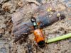 Jāredz tuvāk (kaut vai izkadrēts šis pats attēls) - varbūt tumšā eļļasvabole (Meloe proscarabaeus)