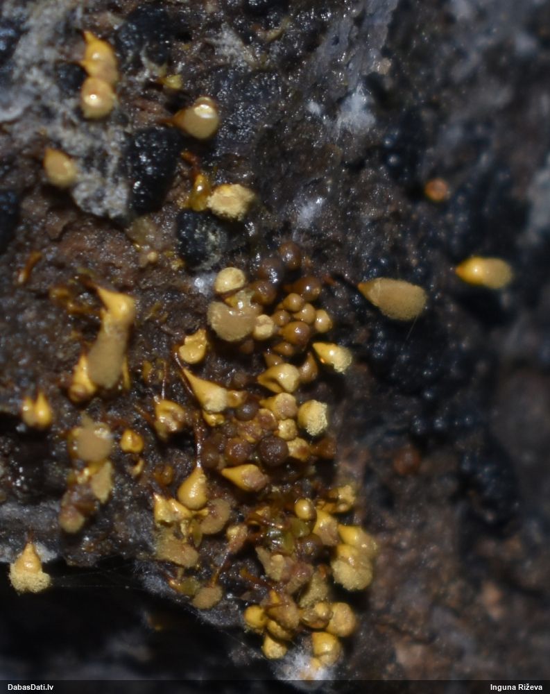 Šis man pašai sanāca pārsteigums. Ievācu paraugu ar domu "varbūt tur ir gļotsēne", dodot varbūtību apmēram pusprocentu, ka ir. Bet no mikroskopijas starp galīgi vecām sporām izdevās atrast ne tikai dažas labas, bet, galvenais, arī perfektus kapilīcija fragmentus, no kura suga, vēl kopā ar sporu pazīmēm, nosakāma nešaubīgi.