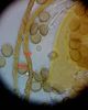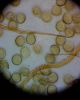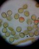Paldies, Raivo! Ar acu gaišumu man arvien sliktāk, bet mikroskops palīdz. Jā, gribēju teikt, ka paraugam, ja vien nav kāda jutīga atradne, kurai drīkst ievākt tikai mazu gabaliņu, vērts ievākt lielāku gabalu, jo gļotsēnēm patīk kompānija. Un mikroskopa mazajos palielinājumos ar sānu papildus apgaismojumu ir vērts rūpīgi "izstaigāt" visu paraugu. Arī ķērpjus un interesantas sīksēnītes tā var atrast, ko dabā nepamanītu. Ar kriksītēm ir dažādi - pirmās es tā arī tikai citu sugu paraugos pamanīju, bet vēlāk redzēju arī dabā kriskīšu plantācijas - ja to ir daudz, tad var pamanīt jau dabā. Uz sūnām gan ir ekstrēms gadījums, dabā droši nepamanītu, arī eksemplāra noņemšana no sūnas nebija pārāk veiksmīga, tāpēc par noteikšanu mazliet šaubos (sporām mazliet cits tonis). Bet pagaidām citas hipotēzes nav (un konkrētā eksemplāra arī vairs ne).