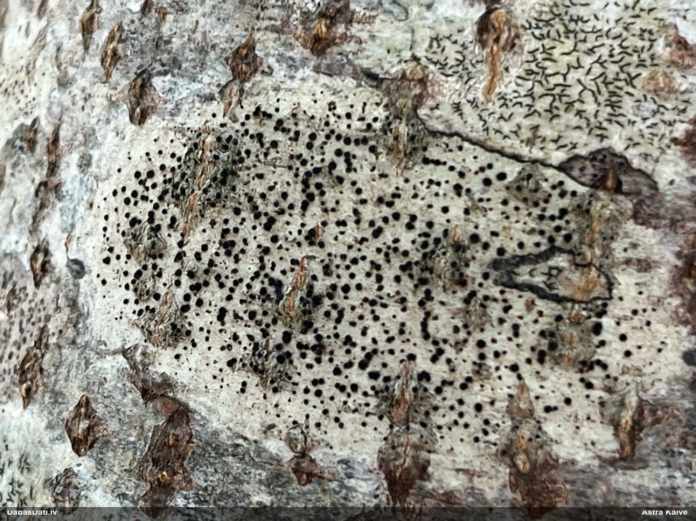 Hipotētisks Mycocalicium subtile. Būtu jāiegūst papildus objektīvi dati.