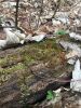 Satrūdējusi kritala mežā, nav dēļi. Iespējams, egle, jauktu koku mežs.