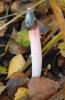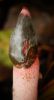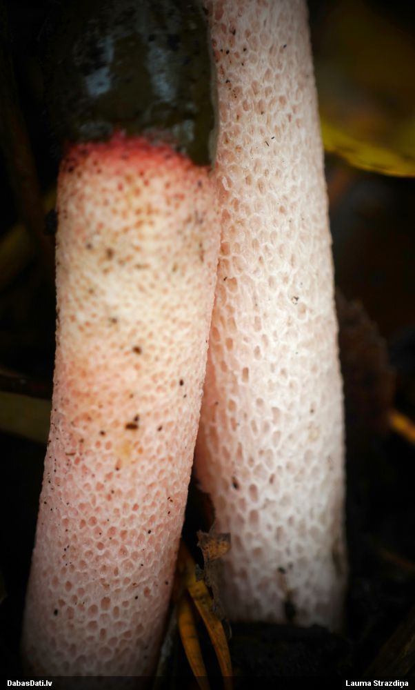 Rūtiņa ir 1mm, par kājiņu es arī nevaru saprast - drīzāk nav nekā ir :) Nobriedušas ir netīri pelēkbaltas ar ļoti trauslu perīdiju. Pagaidām daivās neplaisā, grūti pateikt, kā plaisā, ja nepieskaras augļķermeņiem. "Kraukšķīgs perīdijs", tas ir kā? Pie mazākā pieskāriena tas saplīst gabaliņos, bet vai kraukšķ? :) Sarkans nav, iekšpuse perīdijam balta, bet pskatīšos vēl.