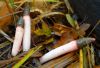 Pieliku vēl četrus foto: augļķermeņi no metāliskās krāsas paliek brūni; atradu kaut ko līdzīgu kolumellai, bet stiprāk uzpūšot tā "lodīte" izvēlās arā, atstājot iedobi; kātiņa galā palika neliels paplatinājums.