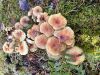 Ļoti neparasta kombinācija - īsa melna kājiņa un apaļīgi plakana galviņa. Un uz nobirām. Gļotsēņu atslēga kā cerīgāko piedāvā nabas jāņodzīti, bet tai neredzu "nabiņu" un nobirām arī nav raksturīga. Šķirstot noteicēju, visas līdzīgās atduras pret pēcsniedzītēm, kas gluži nevarētu būt :D Olītēm melnas kājiņas nav tipiskas (ja tiešām melna), tad paliek lampītes. Par garkājas lampīti (kā blakus) vismaz pagaidām šo nosaukt grūti ;) Atliek cerēt, ka nobriedīs tiktāl, lai mistēriju izdotos atrisināt :)