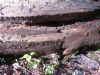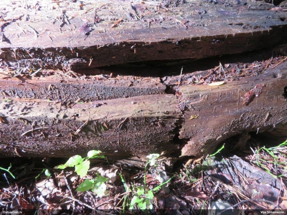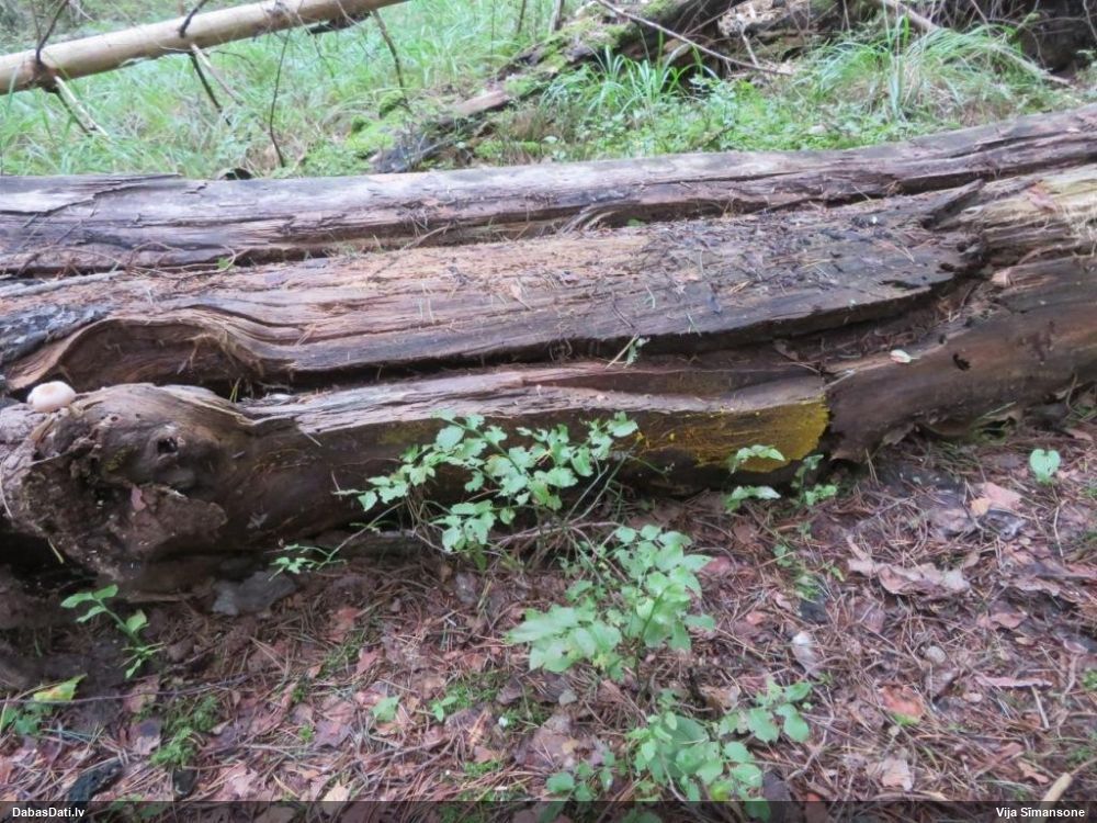 Satrūdējusi kritala mežā, nav dēļi. Iespējams, egle, jauktu koku mežs.