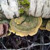 Skujkoks nav par tuvumā. Ir tikai lapu koki - lazda, kastanis, ābelītes. Otrpus celmam (D pusē) lejasdaļā, ko pamanīju pirmo, arī bija kaut kas no šim līdzīga, bet tik izsporojies, ka palicis tikai paliels brūns sporu pleķis. Intriga pavērot nākamgad.