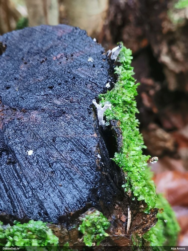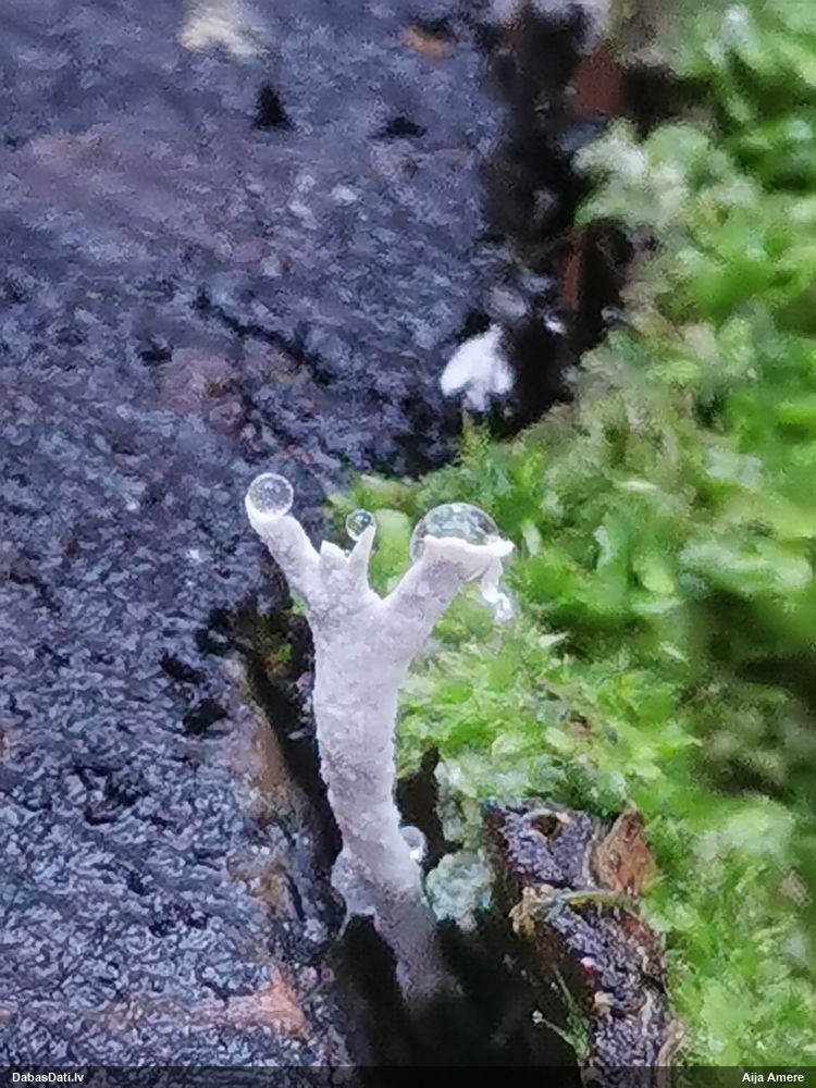 Jā, sugas anamorfa - ar viencipara milimetros mērāmu augstumu un tikai pāris mm diametrā. Tikmēr teleomorfa (gaišbrūns disks vai sekls kausiņš līdz 1 cm diametrā) , dēvēts arī par Ascocoryne solitaria, pagaidām nav Latvijā konstatēts. Tā vai citādi, jauna suga Latvijai. Korektākais zin. nosaukums pēc tagadējiem standartiem - abām formām Ascocoryne albida [ne albidia]. Par piemērotu latvisko nosaukumu jādomā. Par cik abas formas ir vizuāli tik atšķirīgas, nav viegls uzdevums.