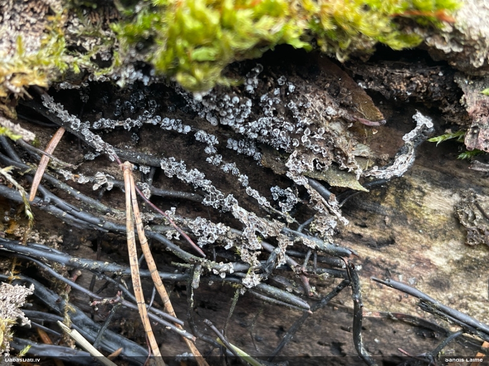 Raivo, nebūs Chaenotheca furfuracea, bet gan C.brachypoda (dabisku mežu indikatorsuga). C.furfuracea ir ar izteiktu laponi, daudz lielāki aķ un košāk zaļa krāsa