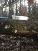 Ja uz beigta koka, tad ticamākā laikam ir B.affinis var. microspora, lai gan tā aug uz mizas. Bet varbūt tieši apakšā gļotsēnēm ir kādi mizas fragmentiņi?