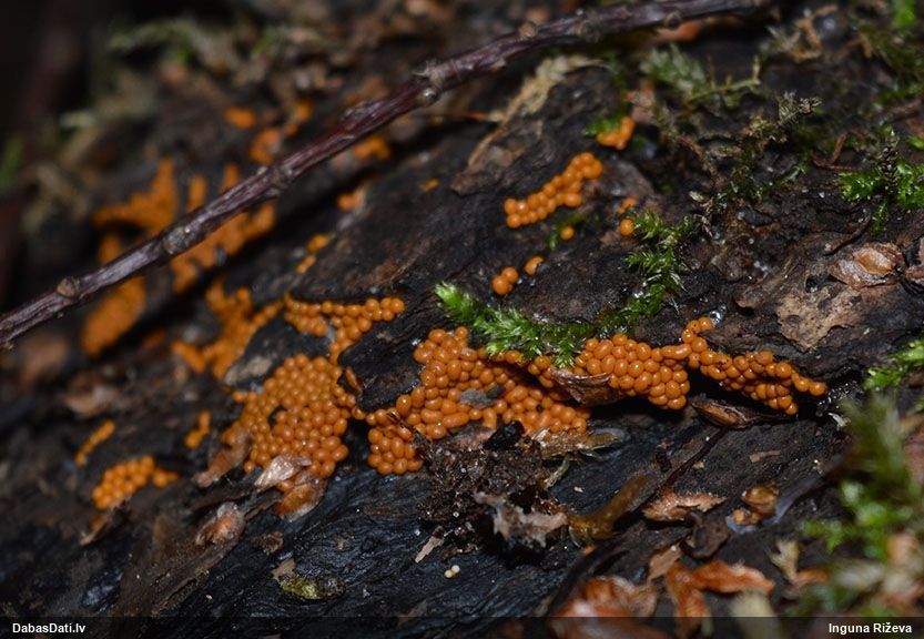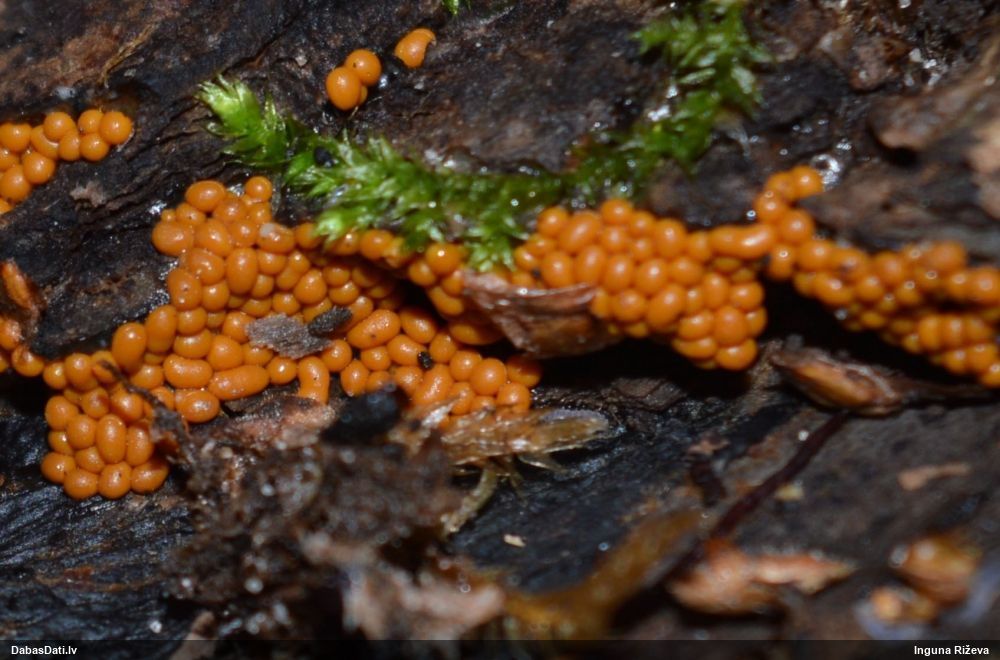 Šobrīd divas versijas - Physarum psittacinum un P.braunianum. Bez paraudziņa te skaidrīzā netiks, bet biotops interesants