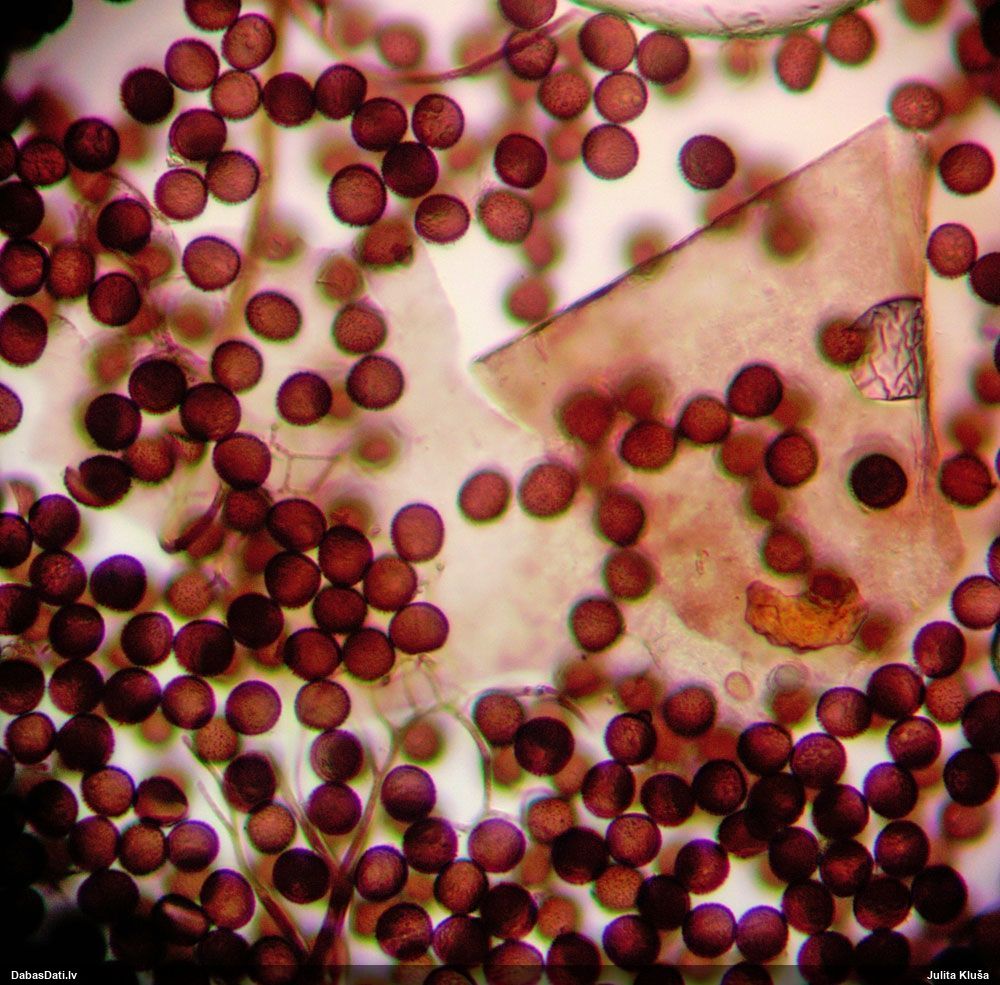 Man ir aizdomas par Lamproderma muscorum, kas būtu jauna Baltijā un reta pasaulē (11 valstis, atradnes gk Amerikā; Eiropā tikai Norvēģijā un Francijā), tāpēc, lai noteiktu, detaļas vajag redzēt skaidri, lai arī citu kandidātu man šobrīd nemaz nav, ja visi mērījumi veikti pareizi.