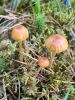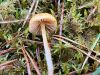 Ļoti neparasta kombinācija - īsa melna kājiņa un apaļīgi plakana galviņa. Un uz nobirām. Gļotsēņu atslēga kā cerīgāko piedāvā nabas jāņodzīti, bet tai neredzu "nabiņu" un nobirām arī nav raksturīga. Šķirstot noteicēju, visas līdzīgās atduras pret pēcsniedzītēm, kas gluži nevarētu būt :D Olītēm melnas kājiņas nav tipiskas (ja tiešām melna), tad paliek lampītes. Par garkājas lampīti (kā blakus) vismaz pagaidām šo nosaukt grūti ;) Atliek cerēt, ka nobriedīs tiktāl, lai mistēriju izdotos atrisināt :)