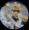 Kaut kas interesants :) Rudenī gļotsēnes attīstās lēnāk. Un ne vienmēr var uzminēt, kad tās ir gatavas sporu stadijai, resp., kā organizēt mitrumu. Vai šobrīd tiek mitrināts un viņas redz "dienas gaismu"? Iespējams, tās ir kādas olītes (Diderma). Reizēm tās pietiek palikt zem siltas lampas, un tās acu priekšā (sekunžu laikā) nobriest, maina krāsu, apvalciņš saplaisā un viss gatavs. Reizēm tā var sabojāt paraugu ;) Ja paraugs liels, var paeksperimentēt ar daļu, mēģinot pasildīt. Vēl pēc pāris dienām, ja nekas nemainītos, man droši vien beigtos pacietība, un es tādu pašu "iemestu mikroskopā", ja nu brieduma pietiek noteikšanai.