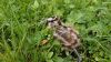 Piezīmespieaugušais putns izceļas no zāles un aizlido, paliek 4 cāļi, kas tēlo paralīzi
