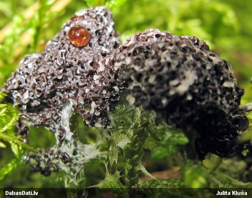 Ak, mans 2019. gada naivums! Piedod, Evita, bet no šāda foto līdz sugai noteikt nevarēs.Šķiet pat, kājiņa varētu arī nebūt melna, bet balta, tad būtu jāizskata kāda pumpurītes Physarum sp. versija.