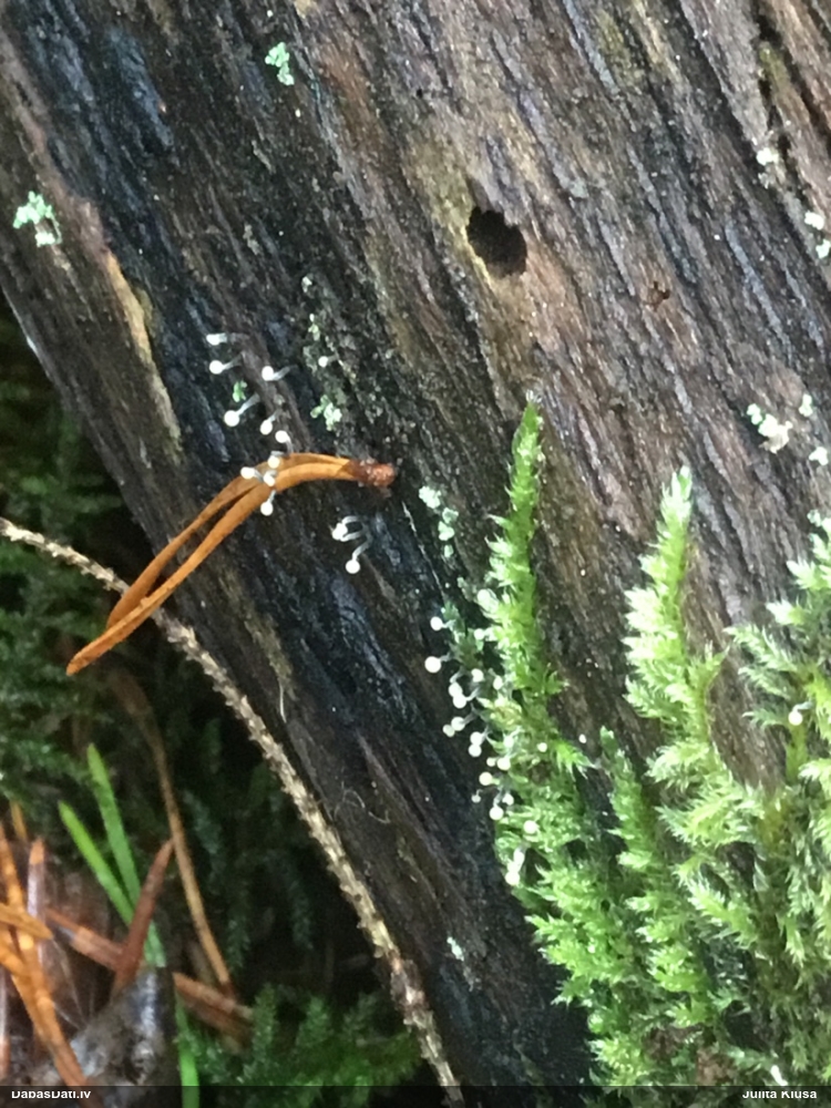 Jā, auga uz sūnām krietni apaugušas kritalas, kolumella apm1/3 no galviņas diametra, galviņas diametrs ap 1mm. Kājiņa praktiski nav, izskatās, ka galviņa "sēž" uz sakaltuša plazmodija pārpalikuma. Sporas varu vēl pārmērīt, varūt kāda būs 9mkm, bet mazāk gan šķiet ka nē.