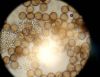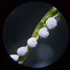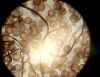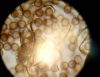 Un ja ir Badhamia, tad vajag arī uz stikliņa bez virsstikliņa mazos palielinājumos (lai nesaslapina okulāru) paskatīties, vai sporas negrupējas, pa divi vai vairāk. Te sporas izskatās ļoti apaļas, drīzāk negrupējas, bet paskatīties tāpat ir vērts.