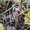 Šīs varētu būt jaunas pumpurītes (Physarum sp.) vai lampītes (Lamproderma sp.)