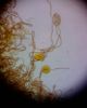 Paldies, Raivo! Ar acu gaišumu man arvien sliktāk, bet mikroskops palīdz. Jā, gribēju teikt, ka paraugam, ja vien nav kāda jutīga atradne, kurai drīkst ievākt tikai mazu gabaliņu, vērts ievākt lielāku gabalu, jo gļotsēnēm patīk kompānija. Un mikroskopa mazajos palielinājumos ar sānu papildus apgaismojumu ir vērts rūpīgi "izstaigāt" visu paraugu. Arī ķērpjus un interesantas sīksēnītes tā var atrast, ko dabā nepamanītu. Ar kriksītēm ir dažādi - pirmās es tā arī tikai citu sugu paraugos pamanīju, bet vēlāk redzēju arī dabā kriskīšu plantācijas - ja to ir daudz, tad var pamanīt jau dabā. Uz sūnām gan ir ekstrēms gadījums, dabā droši nepamanītu, arī eksemplāra noņemšana no sūnas nebija pārāk veiksmīga, tāpēc par noteikšanu mazliet šaubos (sporām mazliet cits tonis). Bet pagaidām citas hipotēzes nav (un konkrētā eksemplāra arī vairs ne).