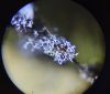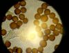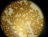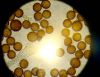 Un ja ir Badhamia, tad vajag arī uz stikliņa bez virsstikliņa mazos palielinājumos (lai nesaslapina okulāru) paskatīties, vai sporas negrupējas, pa divi vai vairāk. Te sporas izskatās ļoti apaļas, drīzāk negrupējas, bet paskatīties tāpat ir vērts.