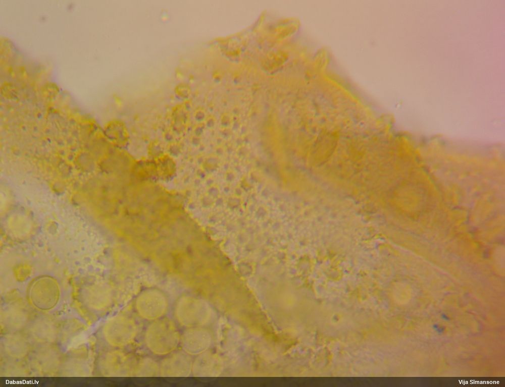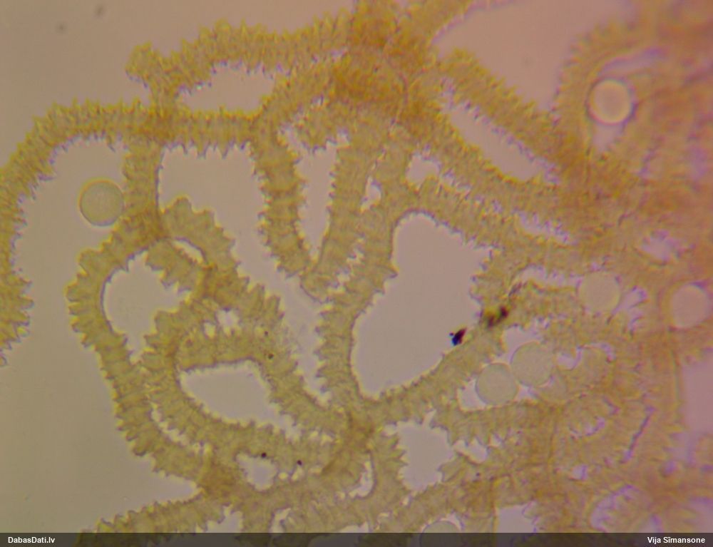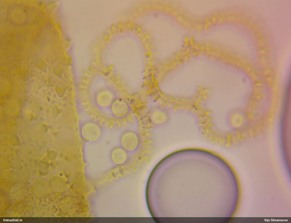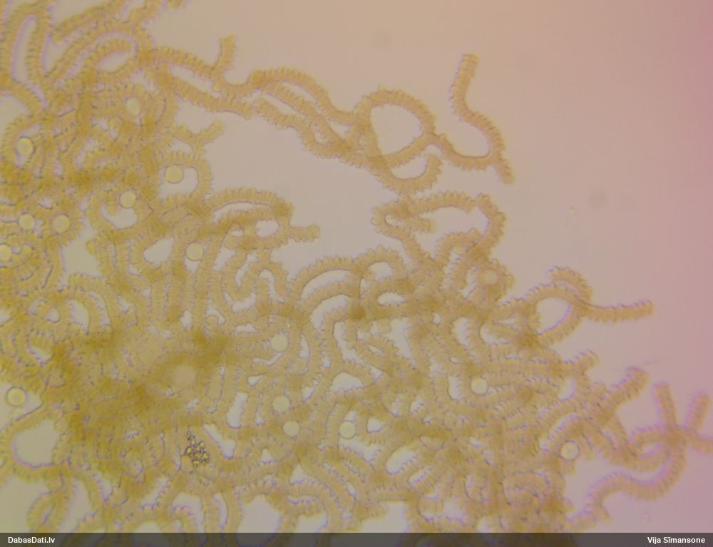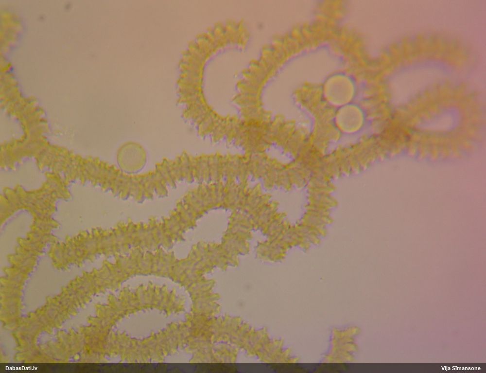 Šis man pašai sanāca pārsteigums. Ievācu paraugu ar domu "varbūt tur ir gļotsēne", dodot varbūtību apmēram pusprocentu, ka ir. Bet no mikroskopijas starp galīgi vecām sporām izdevās atrast ne tikai dažas labas, bet, galvenais, arī perfektus kapilīcija fragmentus, no kura suga, vēl kopā ar sporu pazīmēm, nosakāma nešaubīgi.